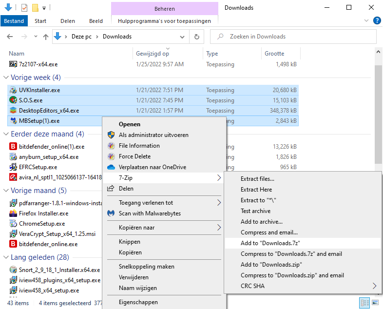 Uitpakken van zip- en 7z-bestanden