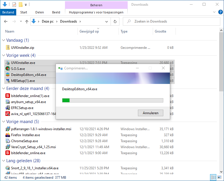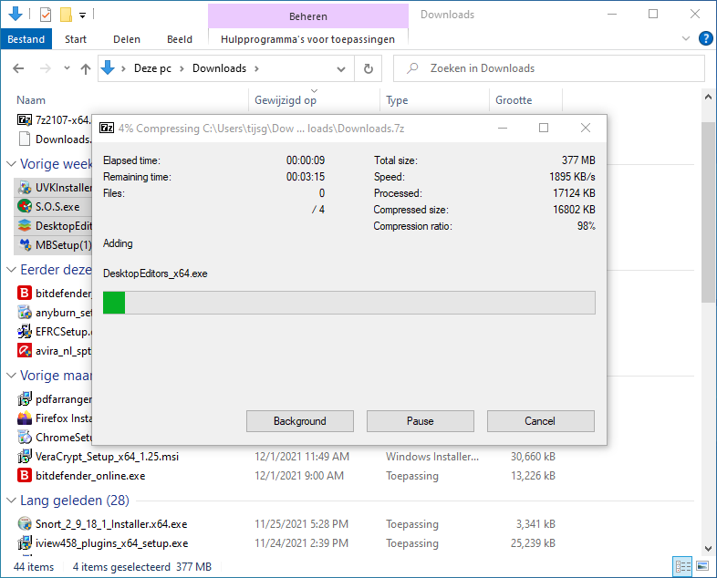 3. Verkenner gaat nu de bestanden comprimeren/zippen