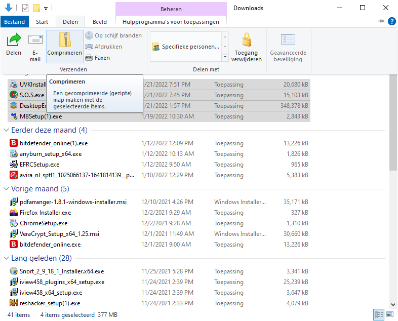 1. Selecteer in Verkenner de bestanden die je wilt comprimeren