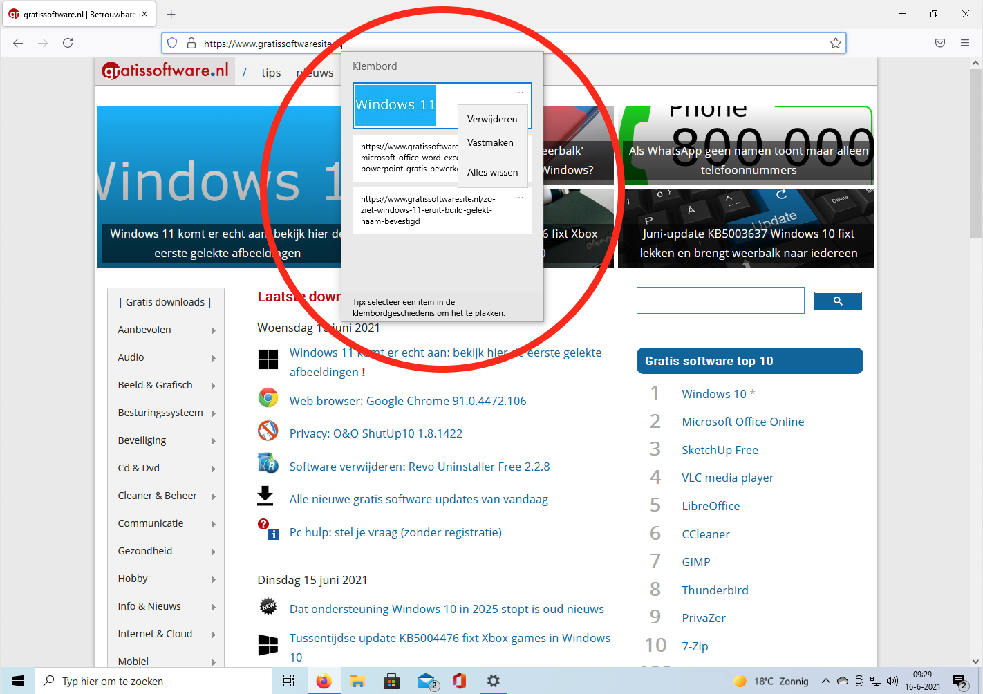 Als je nu meerdere items, zoals linkjes, afbeeldingen of tekstfragementen na elkaar kopieert of knipt dan worden deze bewaard op het klembord van Windows. Je kunt het klembord als volgt oproepen: