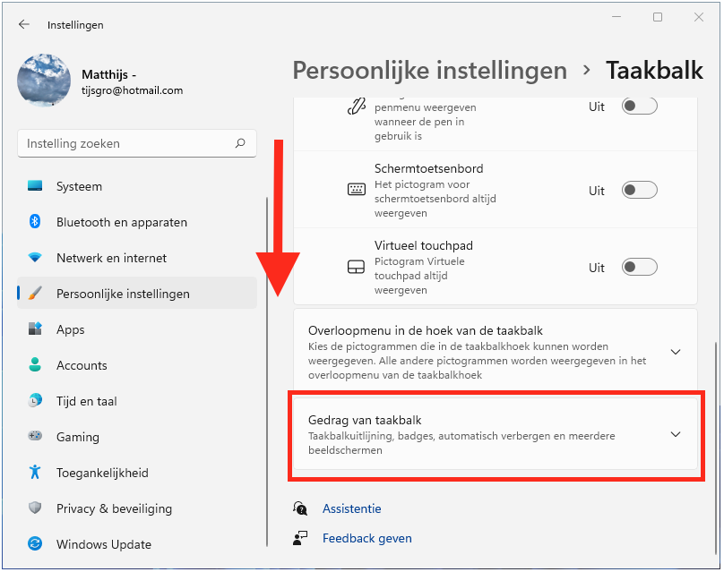 2. Scroll iets naar beneden naar Gedrag van taakbalk en klik daarop: