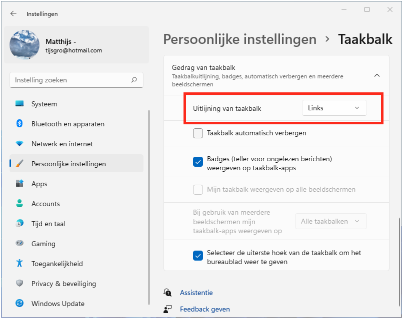 Windows 11 doe het zelf: Taakbalk en Start links in plaats van middenin