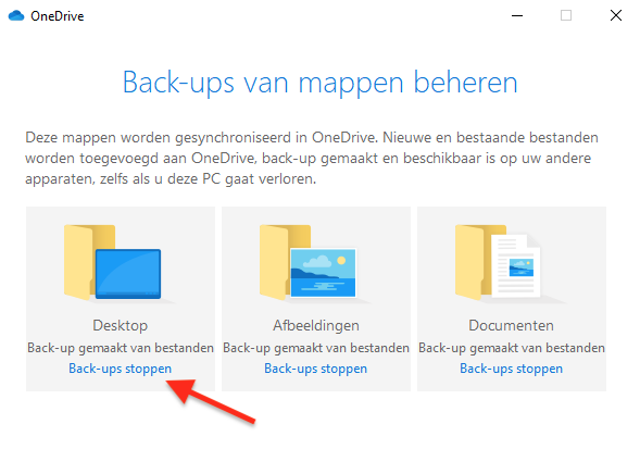 Bij Desktop klik je op Back-ups stoppen en weer op Back-up stoppen.