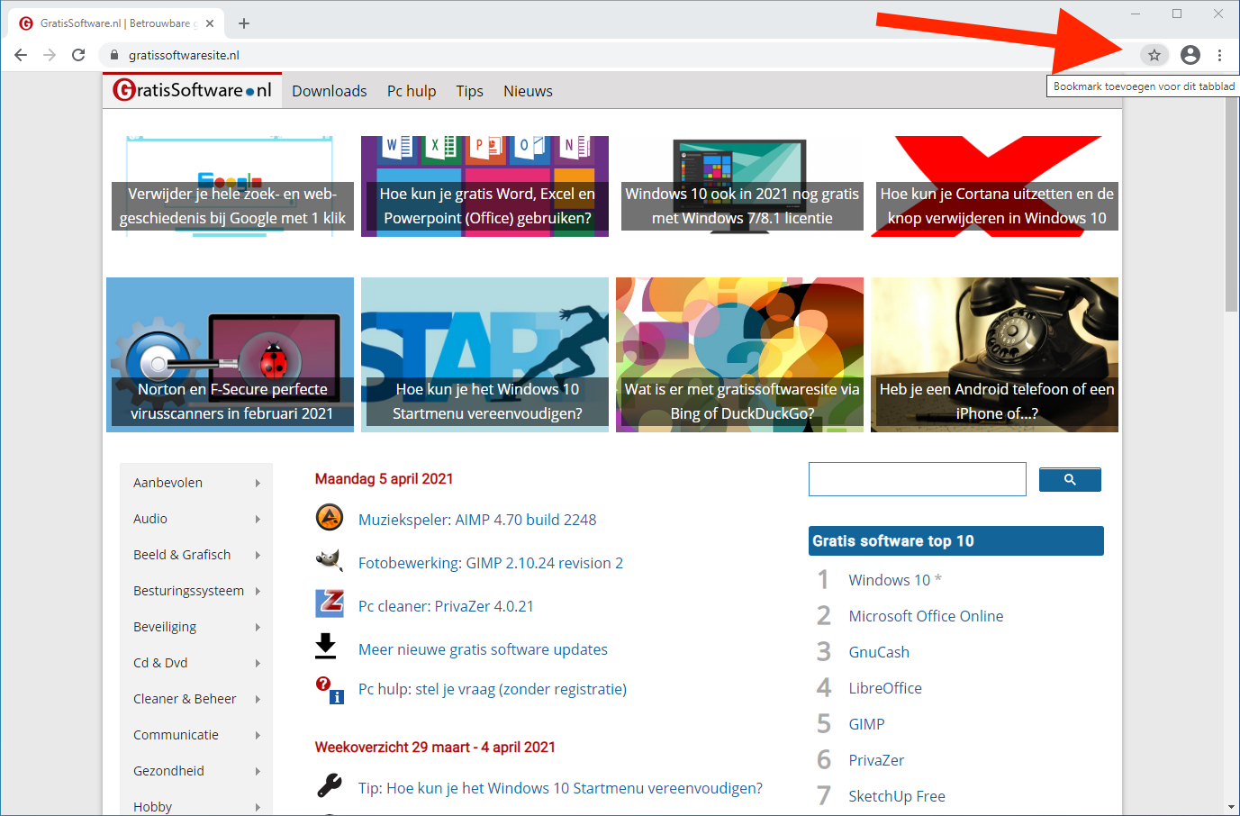 naar de gewenste website, zoals bijvoorbeeld GratisSoftware.nl.
