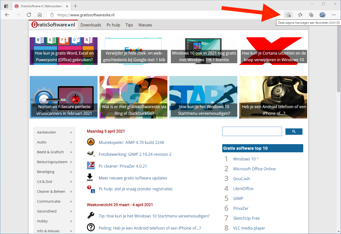 Dat laatste is natuurlijk wel zo makkelijk, dan kun je in het vervolg altijd met één klik bij je favoriete websites komen zonder nog iets te hoeven intypen. Wij laten zien hoe je in Edge, Google Chrome en Firefox een Favoriet, Bookmark of Bladwijzer aanmaakt (het is een andere benaming voor hetzelfde). Klik op de afbeeldingen voor een grotere weergave.