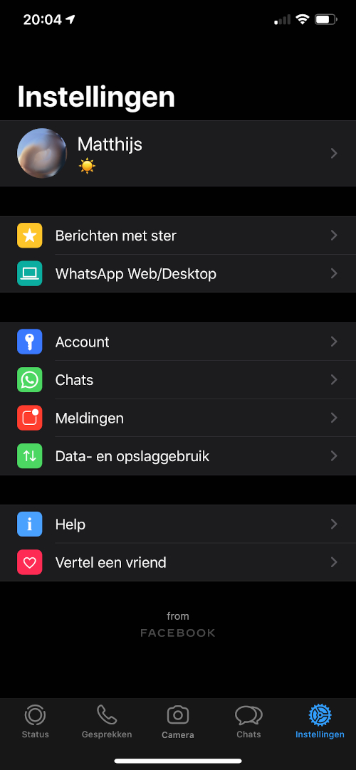 Ga in WhatsApp zelf naar Instellingen | Chats | Thema - selecteer Donker