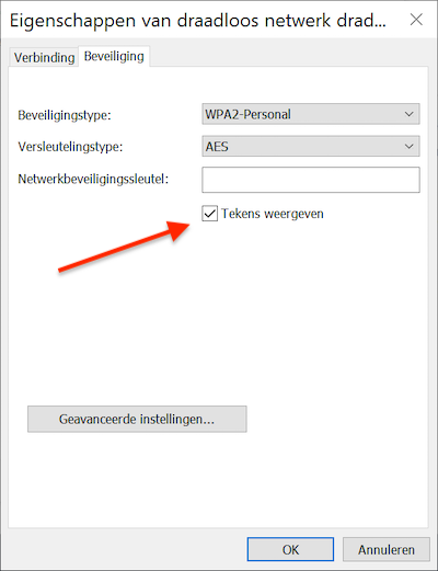 Achter Netwerkbeveiligingssleutel komt dan je wifi-wachtwoord tevoorschijn.