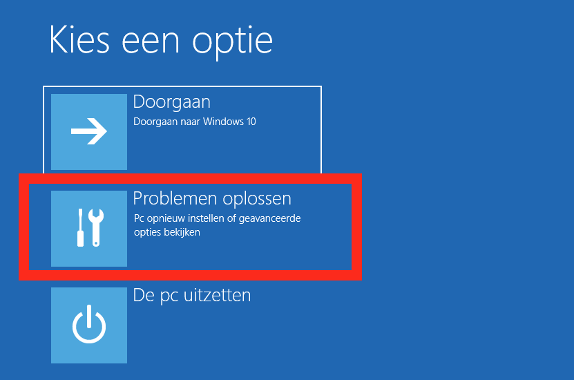 3. Kies op het eerste blauwe scherm voor Problemen oplossen: