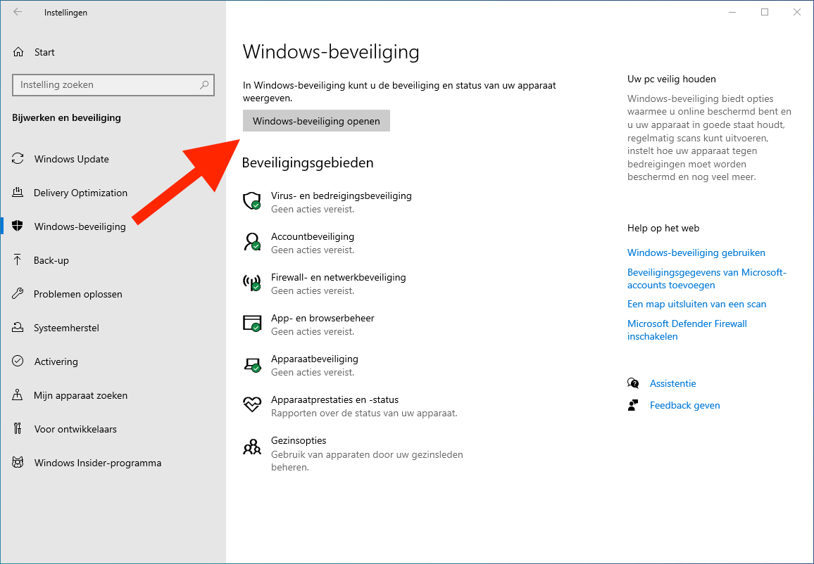 1. Je kunt controleren of je pc TPM 2.0 heeft door te gaan naar Instellingen | Bijwerken en beveiliging | Windows-beveiliging en te klikken op Windows-beveiliging openen