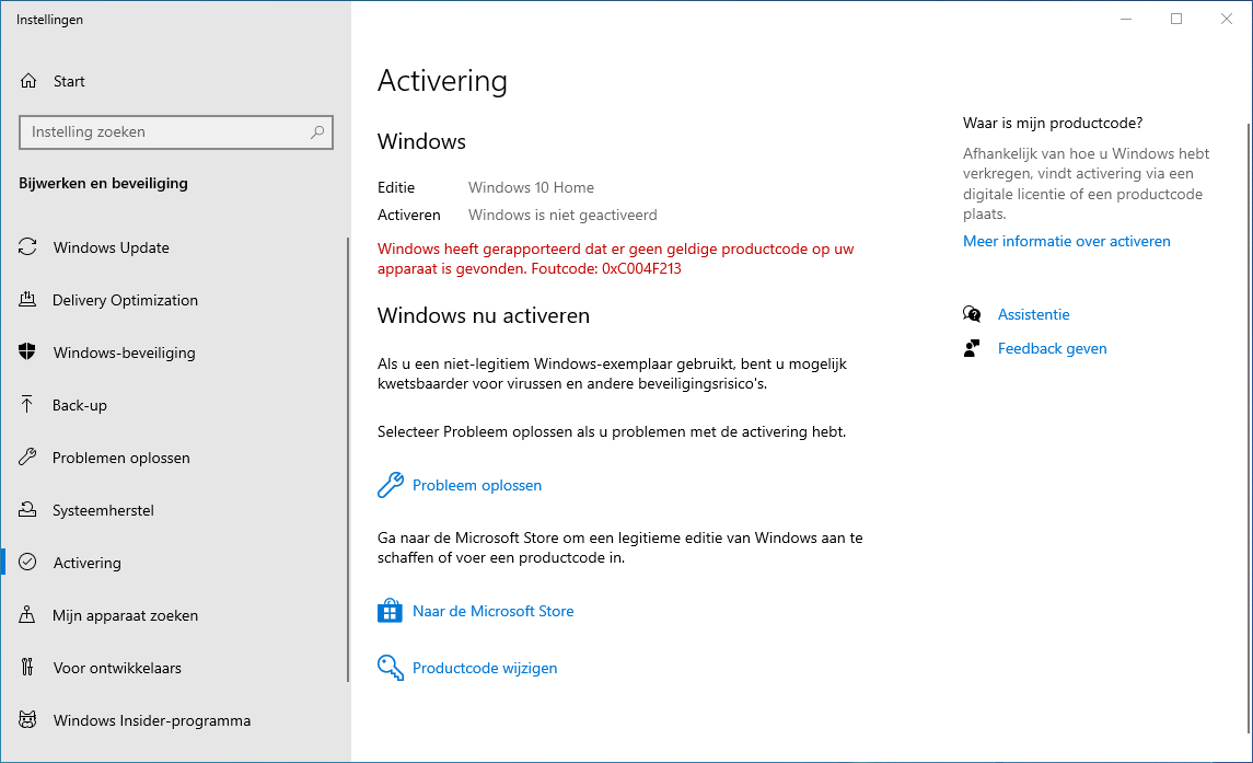 Lees hier de uitleg van Microsoft over activatie en product code of digitale licentie
