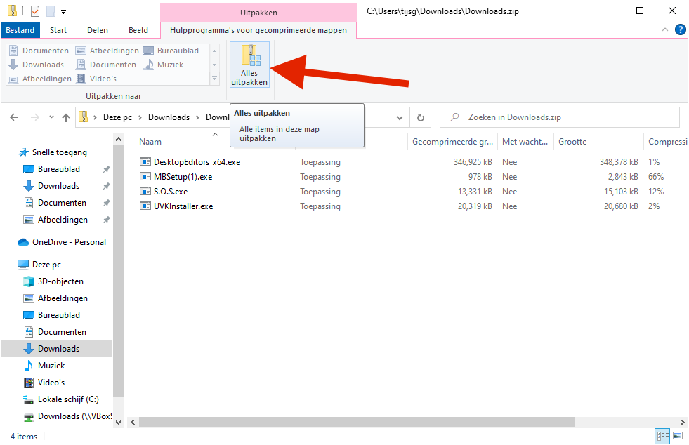 2. Je kunt nu alle bestanden in het zip-bestand uitpakken naar de map van je voorkeur.