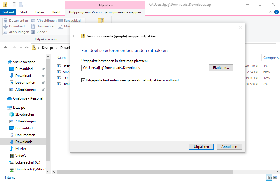 Als je klaar bent ga je naar de map die je gekozen hebt en daar vind je alle bestanden uit het zip-bestand terug.