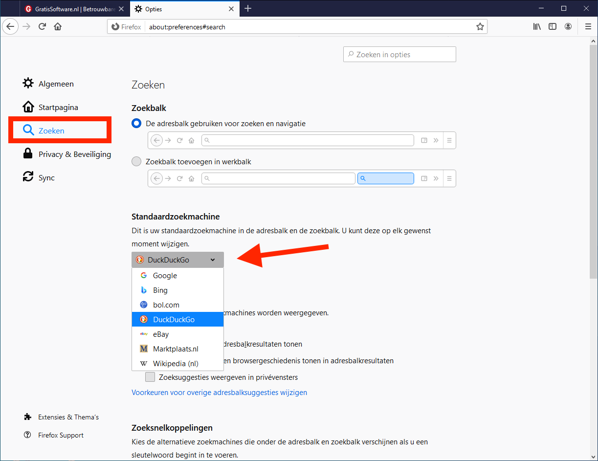 Bij Firefox verander je daarmee net als bij Chrome zowel de zoekmachine in de adresbalk als op de nieuw-tabbladpagina.