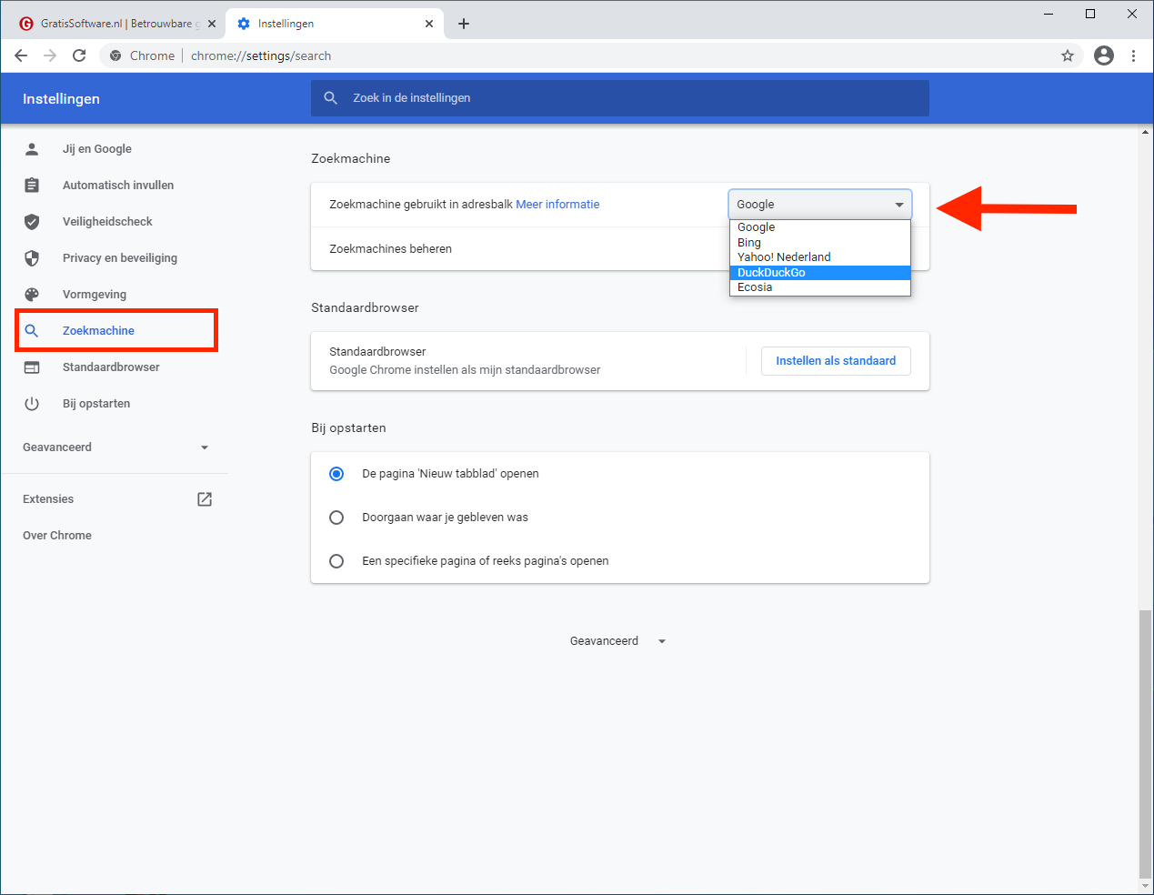 1. Hoe verander je de zoekmachine in Google Chrome?