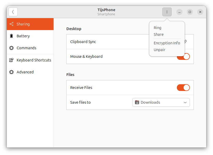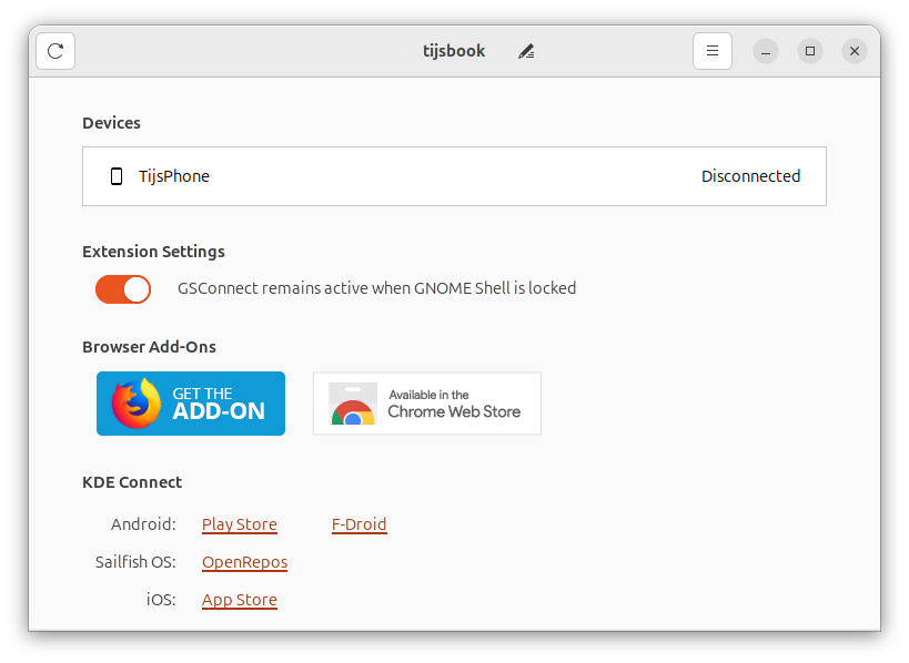 Op je Ubuntu pc hoef je verder niks te installeren (ga dus NIET KDE Connect daar installeren, want dan werkt GSConnect niet meer!).