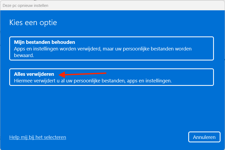 1. Kies Alles verwijderen als je de pc wilt leeghalen