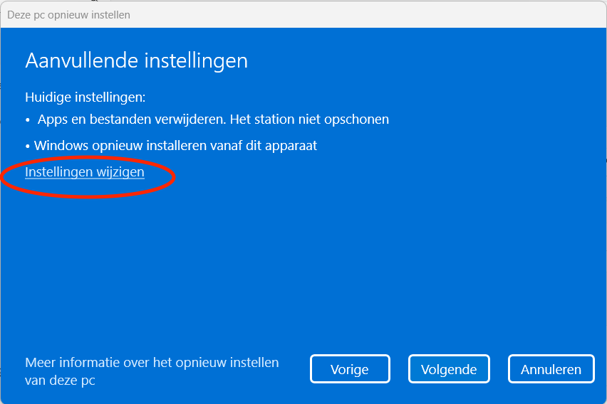 3. Nu komt de essentiële stap als je je pc wilt wissen alvorens opnieuw te installeren (zodat je privégegevens niet teruggehaald kunnen worden)!