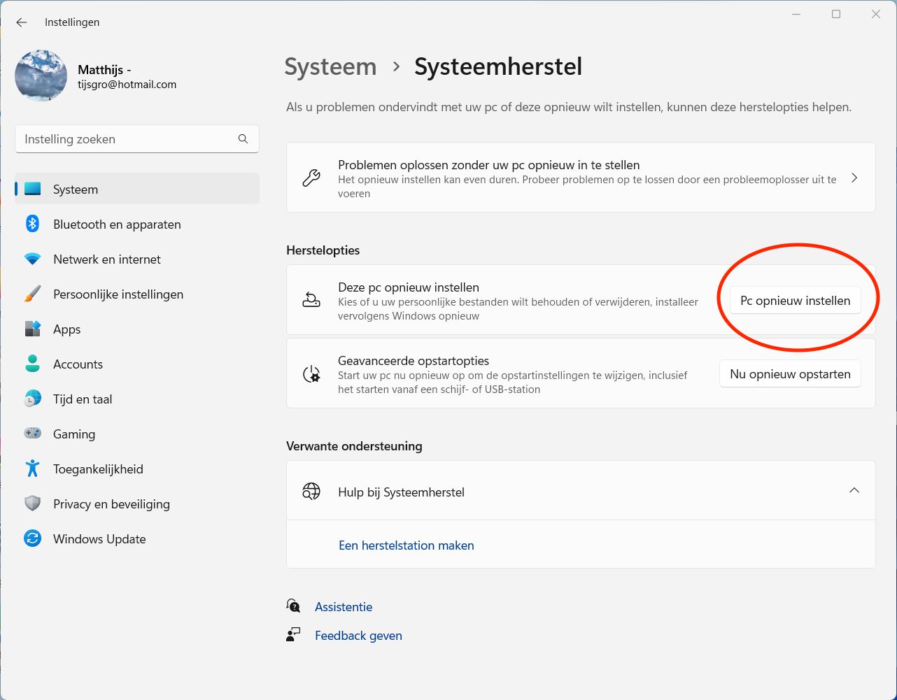 Het best en het makkelijkst is om dan de ingebouwde systeemherstel-functie in Windows 10 en 11 te kiezen om je pc te wissen en Windows opnieuw te installeren. Dit doe je zo op Windows 10 en 11.