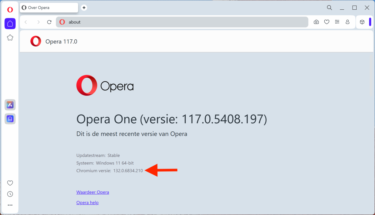 Opera gebruikt nog Chromium 132, terwijl versie 135 al uit is!