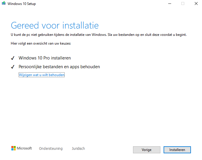 Als je kiest voor Deze pc nu bijwerken dan wordt je computer bijgewerkt naar de laatste versie van Windows 10. Je persoonlijke bestanden en de meeste apps worden gewoon behouden.