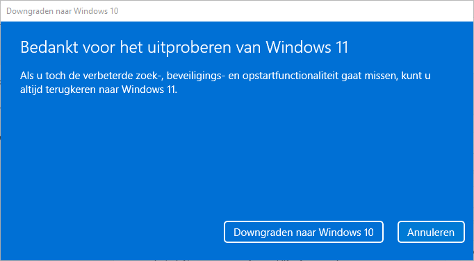 Windows 11 downgraden/terugzetten naar Windows 10