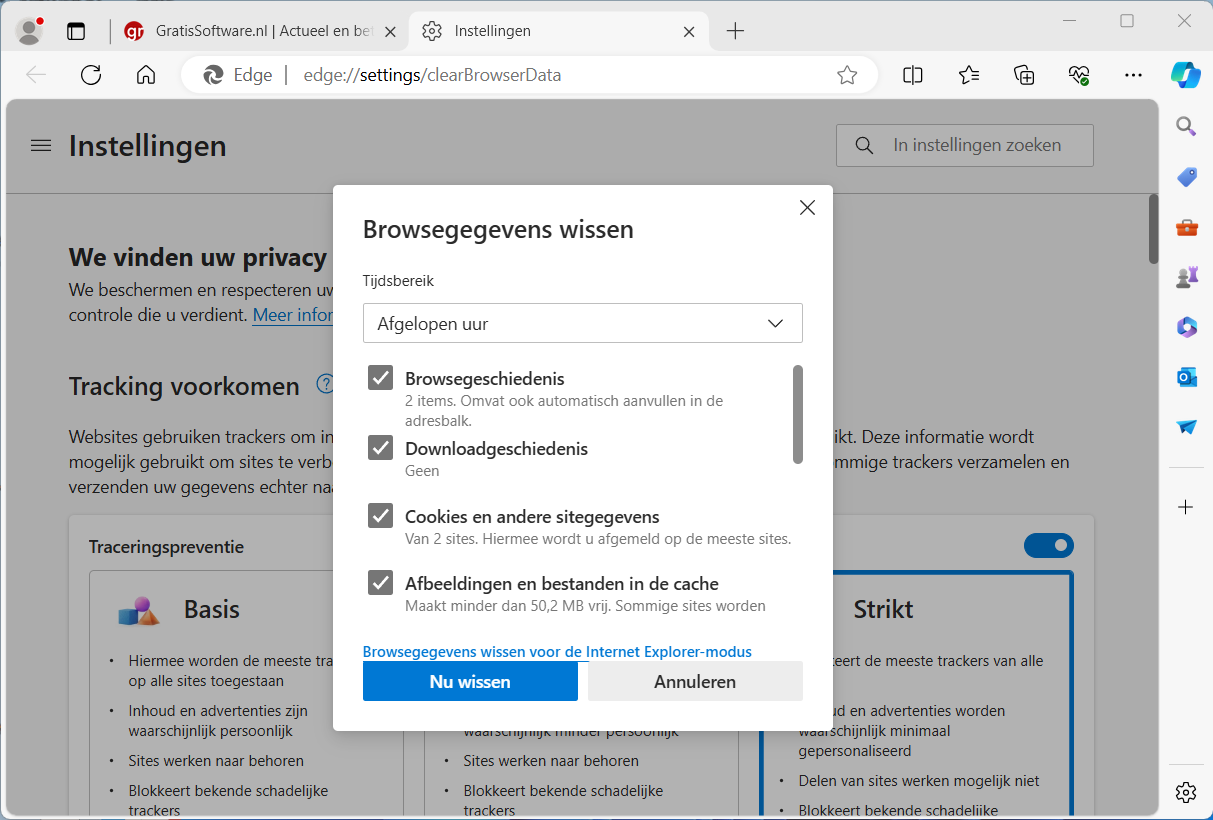 Je wist nu alleen de meest recente geschiedenis in je browser. Je kunt de periode trouwens ook aanpassen naar twee of vier uur (Firefox) of 24 uur (Chrome en Edge).