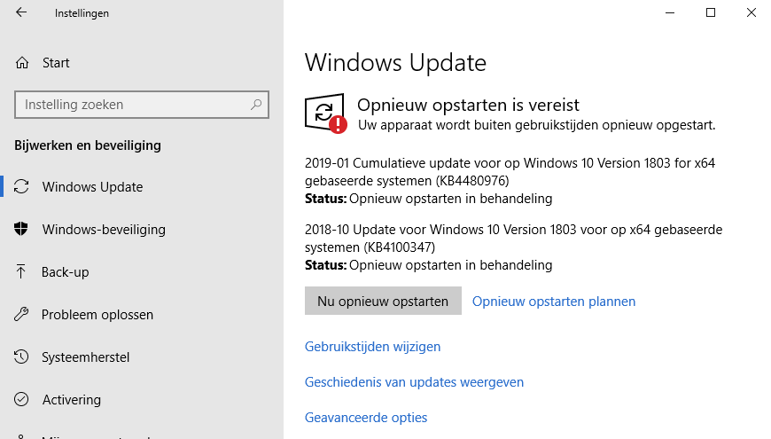 Tussentijdse KB4480976 voor Windows 10 1803 niet downloaden