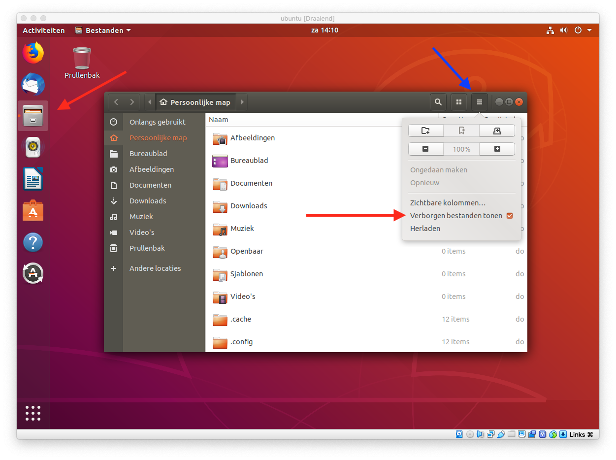 Ubuntu Linux laat standaard niet alle bestanden en mappen zien. Bestanden en mappen met een punt ervoor worden niet getoond. Hoe kun je zichtbaar maken?
