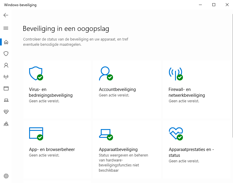 Het Windows Defender Beveiligingscentrum heeft een kortere naam gekregen en heet nu Windows-beveiliging. Hier vind je zoals altijd Virus- en bedreigingsbeveiliging (verzorgd door het uitstekende Windows Defender Antivirus dat inmiddels helemaal geïntegreerd is in Windows 10 - je kunt het niet meer als aparte app openen, het is verweven in de instellingen), Accountbeveiliging, Firewall- en netwerkbeveiliging, App- en browserbeheer, Apparaatbeveiliging en meer.
