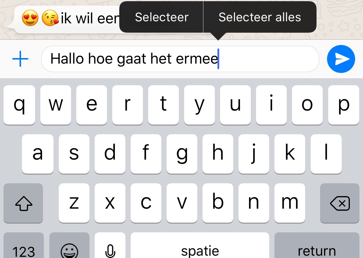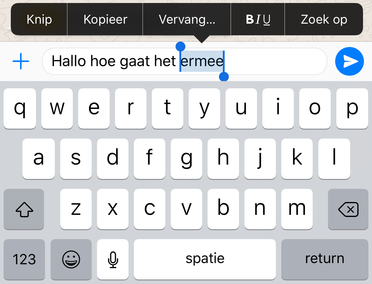 Sinds deze week kun je echter in iOS gewoon door een stuk tekst te selecteren de woorden via het contextmenu (vinger op scherm houden) vet, cursief of doorgestreept maken.