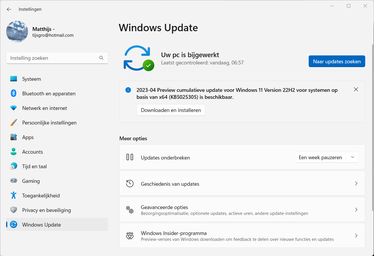 Preview updates zijn optioneel: ze worden niet automatisch geïnstalleerd. Dinsdag 9 mei 2023 krijg je deze foutoplossingen en functies ook meegeleverd met de maandelijkse beveiligingsupdates.