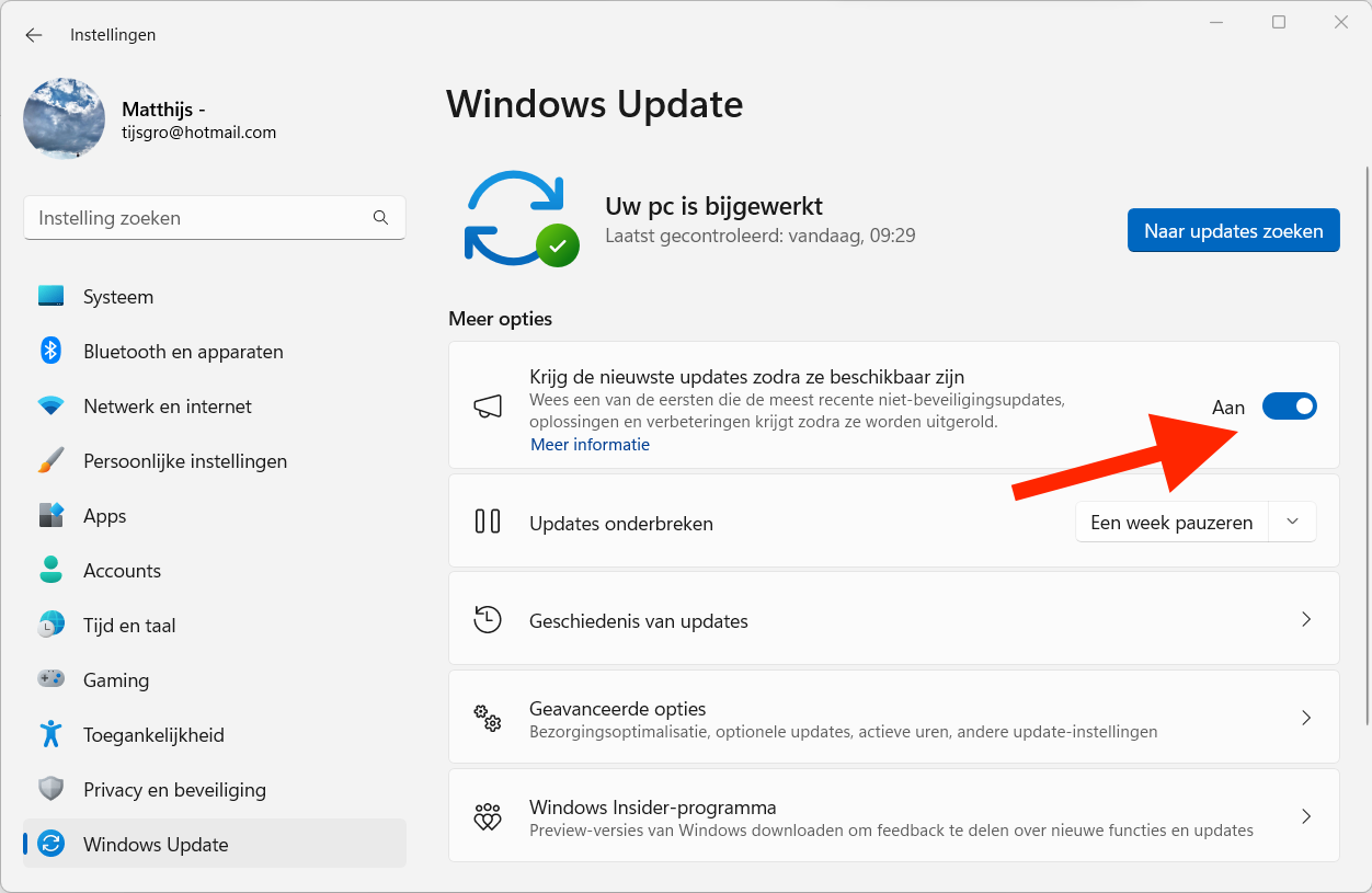 1. Windows 11: altijd als eerste nieuwe updates voor 22H2