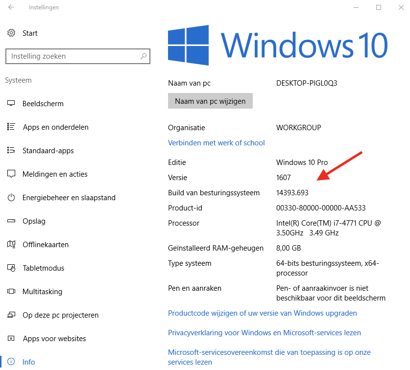 Als je in versie 1507 buildnummer 10240 zit dan zul je in de komende twee maanden de upgrade moeten gaan doen. Dit kun je gewoon via Windows Update doen: Instellingen | Bijwerken en beveiliging | Windows Update - Naar updates zoeken.