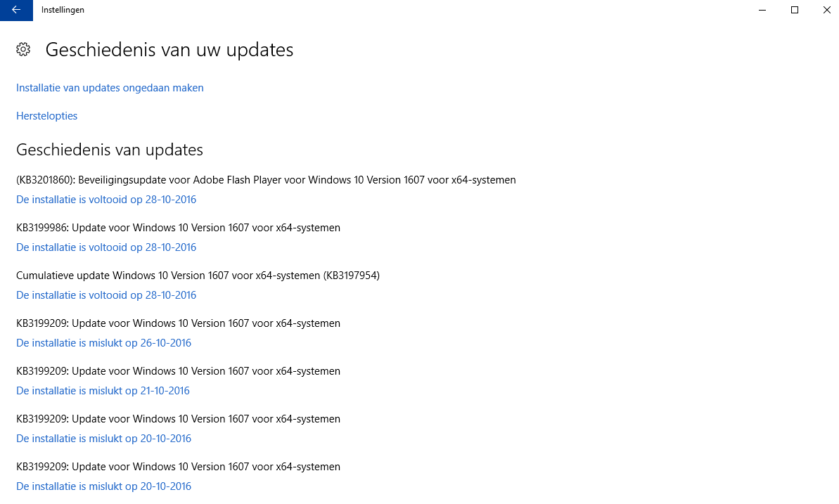 KB3193494: Windows 10 versie 1607 build 14393.189 (20 september 2016, nog niet binnen gekregen net laten controleren maar geen update. Momenteel heb ik de build 14393.187 (windows pro)
