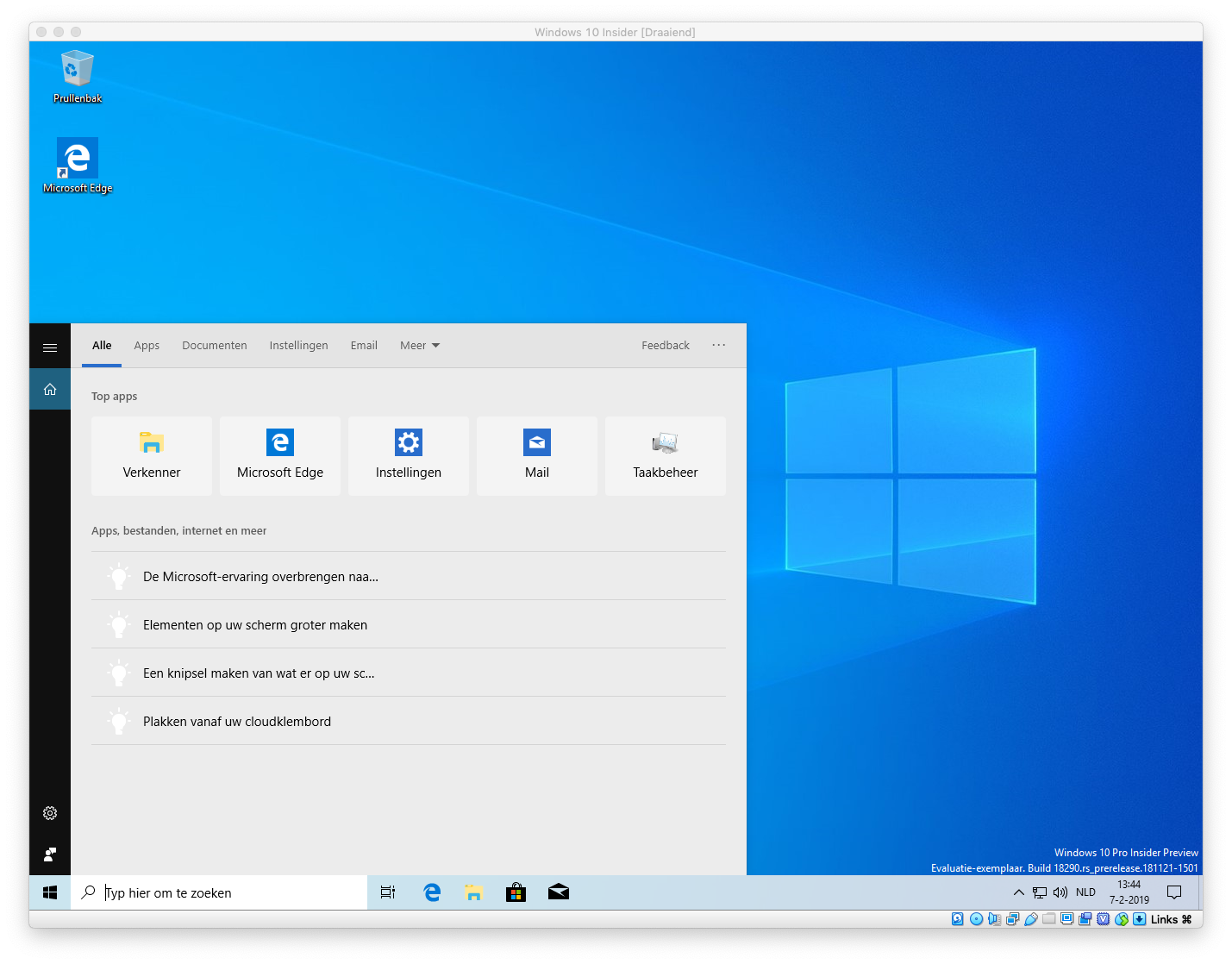 In Windows 10 1903 wordt de zoekfunctie losgekoppeld van assistent Cortana (die in Nederland toch al niet gebruikt kon worden). Dat is fijn. Het zoekmenu is bovendien flink uitgebreid met Top apps (die je veel gebruikt) en categorieën voor het zoeken zoals Instellingen, Documenten of E-mail. Lijkt handig.