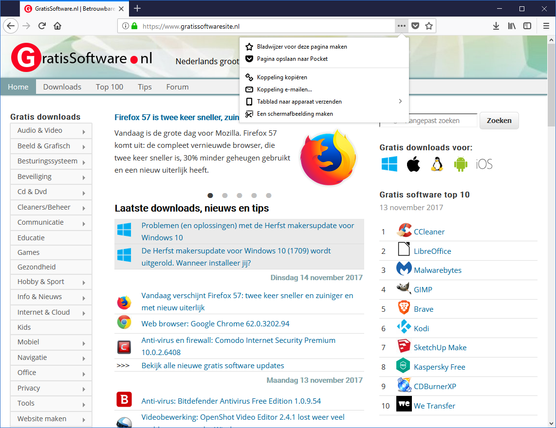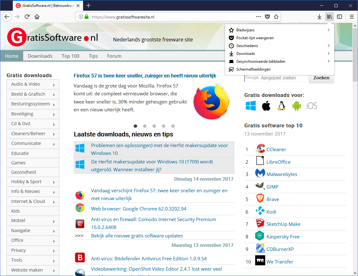 Ik krijg net16-11-2017 14:35 een update naar Firefox 58, ik gebruikte Firefox 57 al enkele weken.